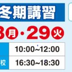 2020年11月5日 / 最終更新日時 : 2021年1月4日 啓進塾 イベント情報 小学3年生対象 冬期講習受付中! 小学3年生対象 冬期講習の内容が決定いたしました。 冬期講習は小学3年生の方ならどなたでも参加できます。 冬期講習からそのまま入塾して、新4年生以降も継続することも可能です。 冬期講習 4日間 金沢文庫校 12/26 […]