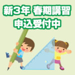 2021年2月24日 / 最終更新日時 : 2021年4月8日 啓進塾 イベント情報 新3年生 春期講習 申し込み受付中! 新3年生春期講習募集中 新3年生の春期講習は、外部生も参加できます。参加を希望する校舎までお申し込み下さい。 新3年生はテストなしで通塾を開始できます。春期講習参加後にそのまま入塾することも可能です。 科目 算数・国語 […]