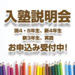 2024年7月3日 / 最終更新日時 : 2024年7月29日 啓進塾 お知らせ 日吉校 夏期講習直前 入塾個別面談のご案内 3年生・4年生を対象に,夏期講習直前の入塾個別面談の窓口を設置しました。大勢の中での説明会と異なり,お子さま一人ひとりのご様子をお聞かせ頂きながらのお話ができます。これから中学受験を始めようとお考えの方や別の塾に通って […]